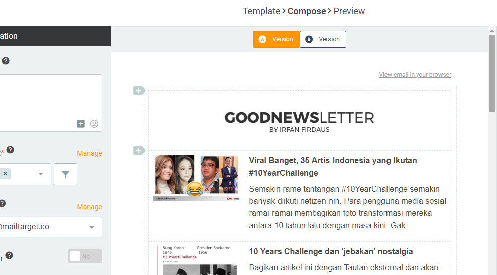 The A/B Testing feature aims to increase the likelihood of your email being opened by sending two different emails to two small audience groups, then automatically sending the remainder to the email that received the best audience response.
