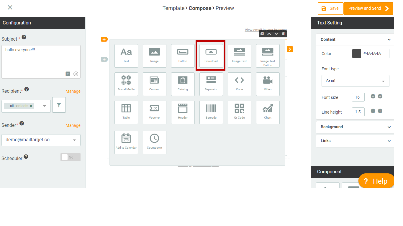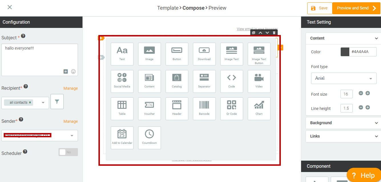 Make your emails more attractive. Add various components such as text, images, or buttons to your emails. Additionally, you can generate content from a website that you find interesting.
