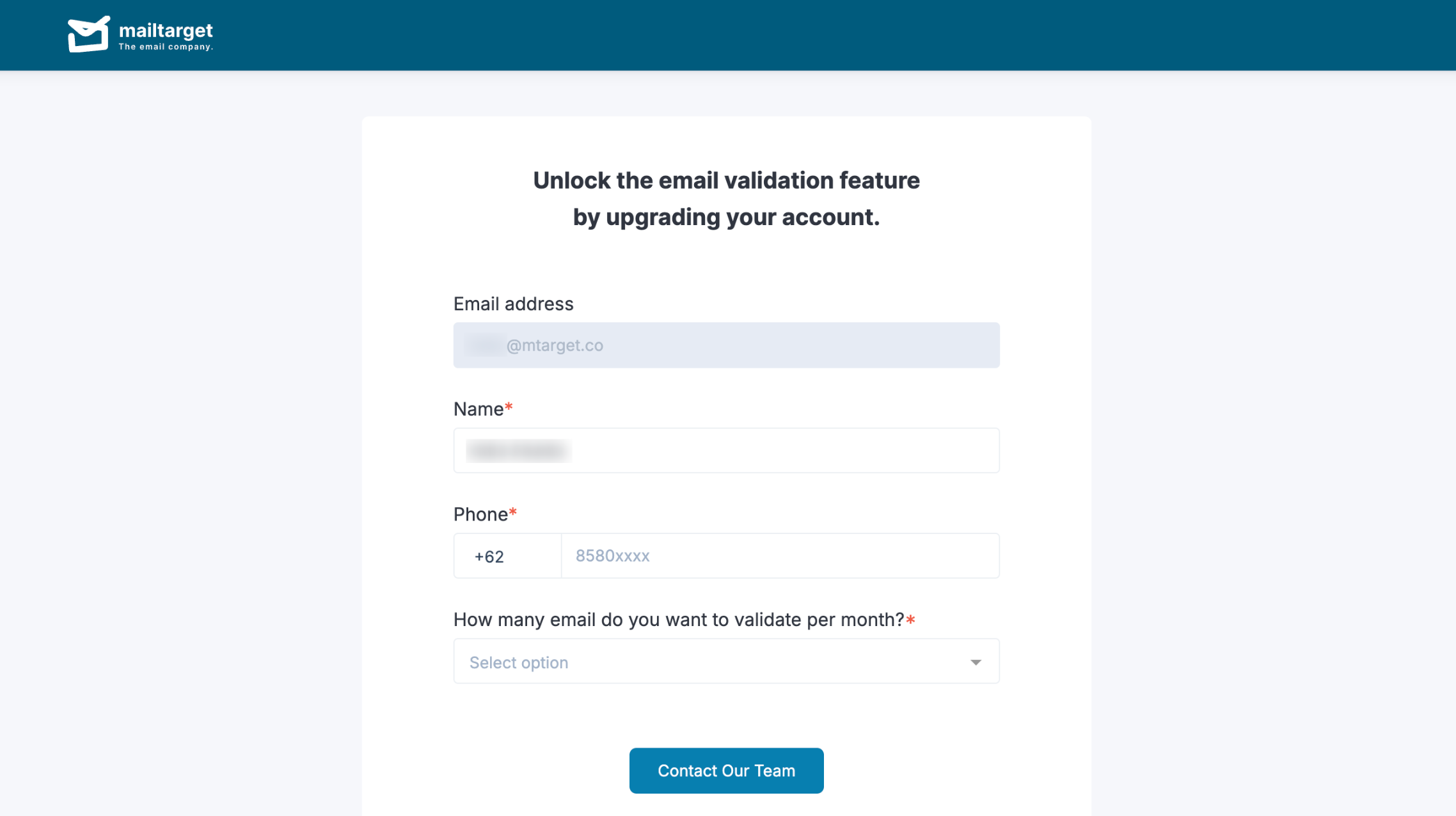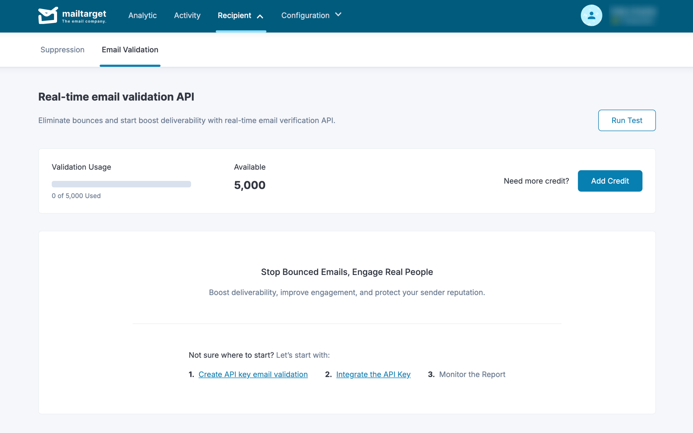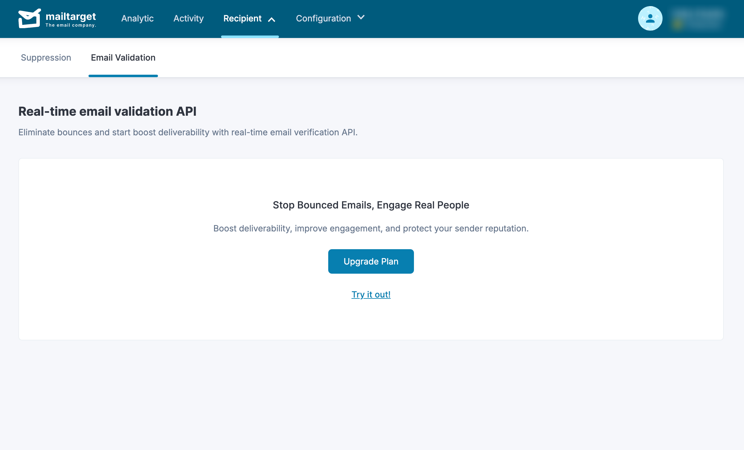 Go to the Recipients > Email Validation page within the Mailtarget dashboard.