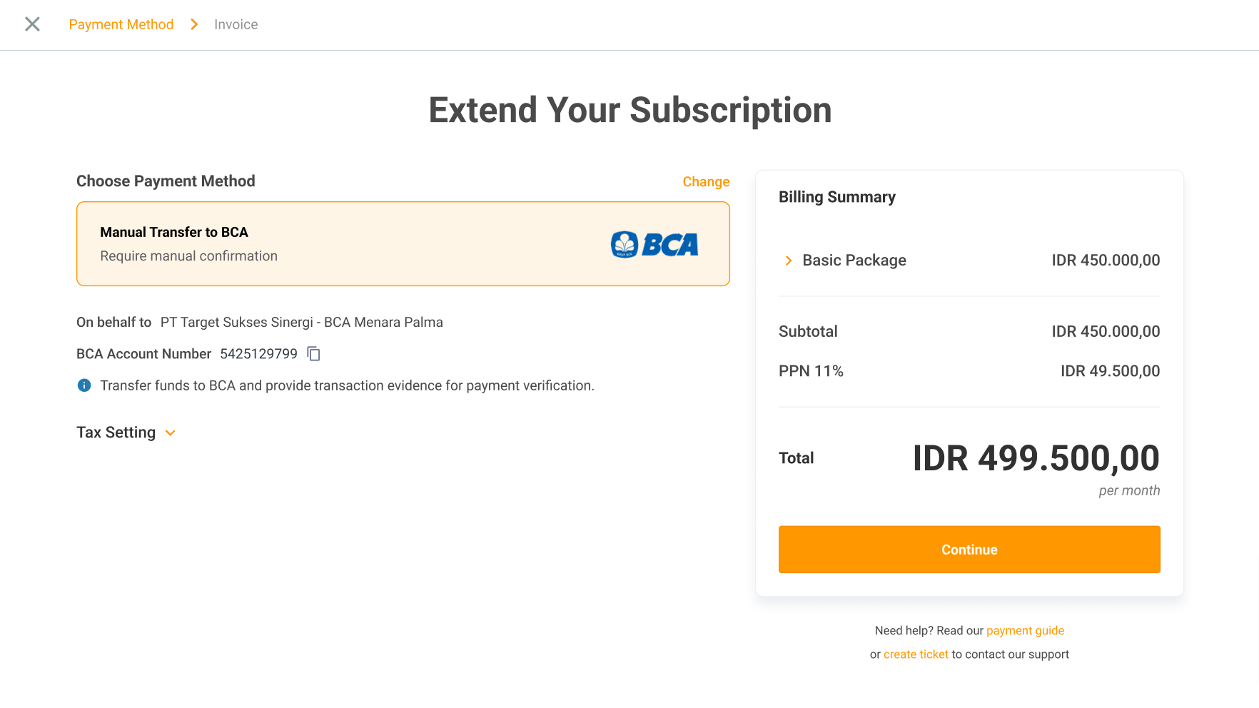 4. Choose Payment Method Select your preferred payment method and review your order summary. After that, click the "Continue" button.