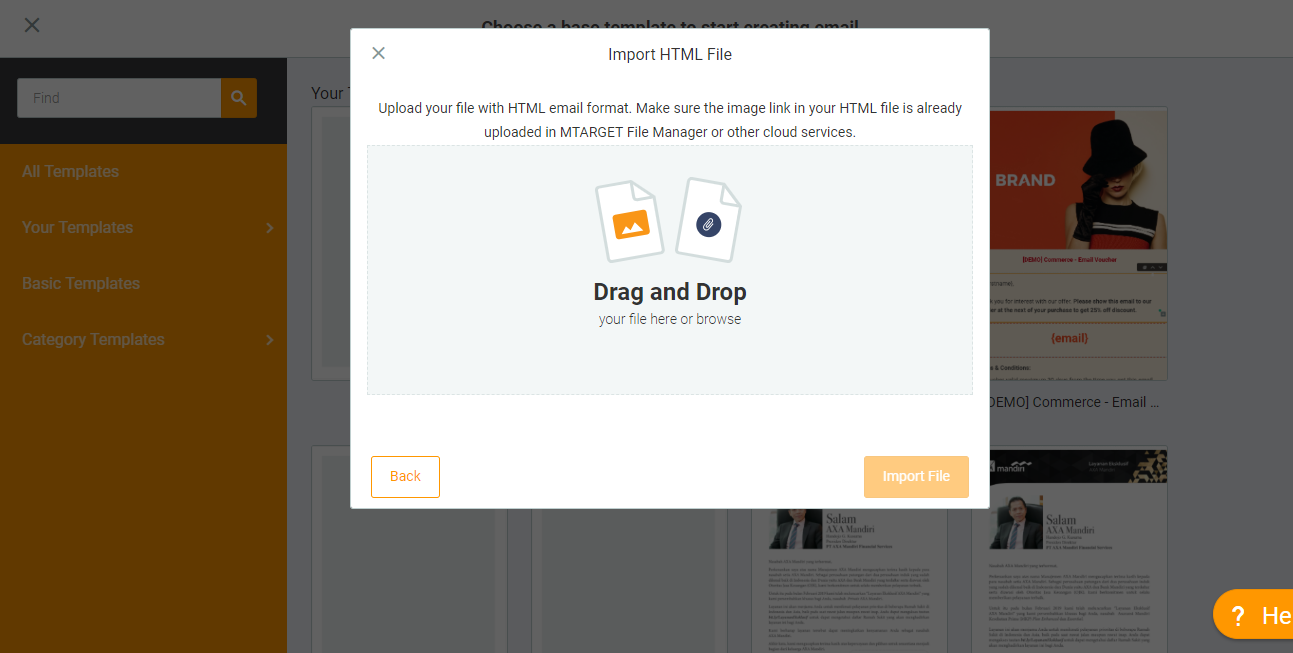 You can create email templates using HTML code. If you have an email template in an HTML file format, import the file, and the email template will be automatically generated. Additionally, you can directly edit the HTML code when adjustments are needed to the template appearance.