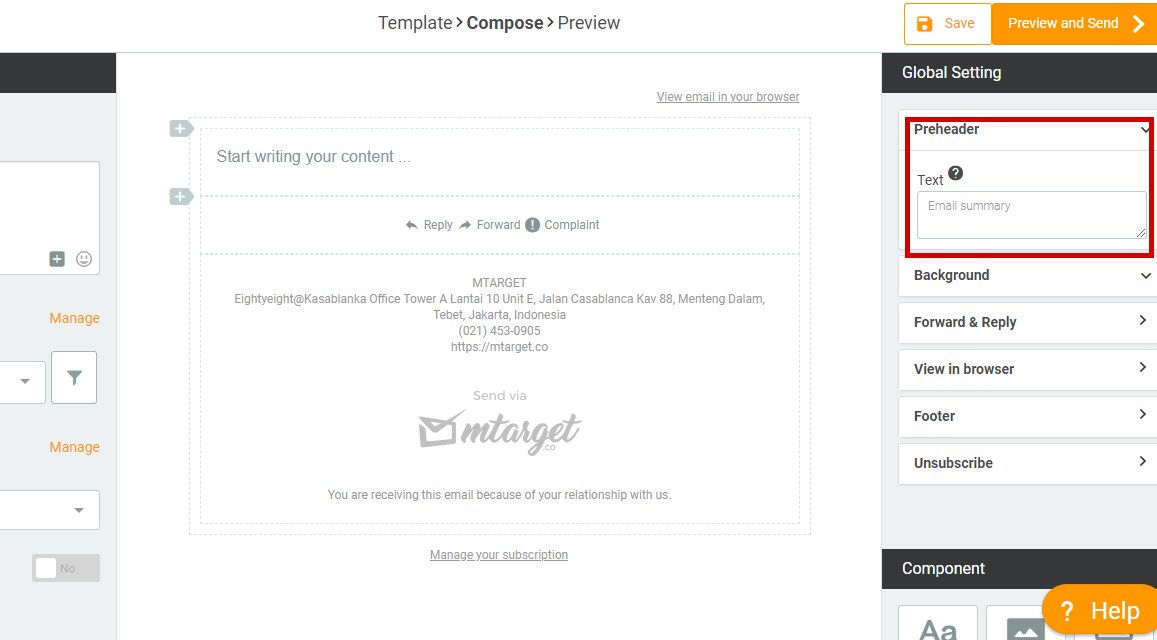 You can now add a preheader to your emails. A preheader is a brief summary text that follows the subject line when the email is viewed in the inbox.