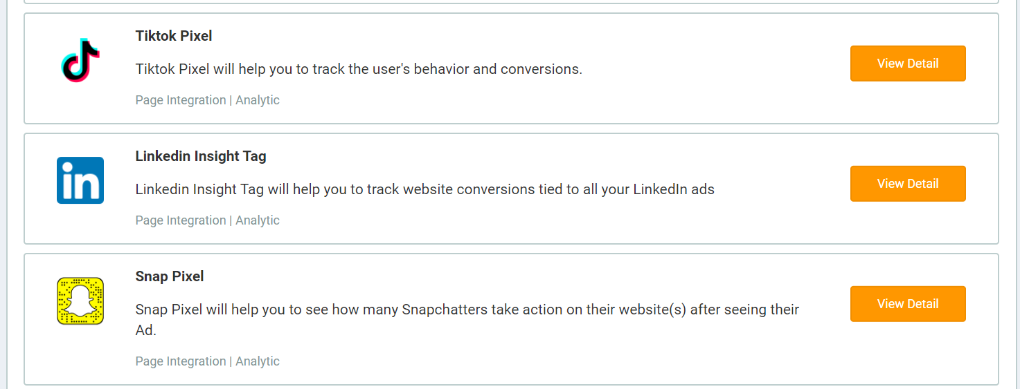 To integrate, you can read the tutorials here for LinkedIn, TikTok Pixel, and Snap Pixel.