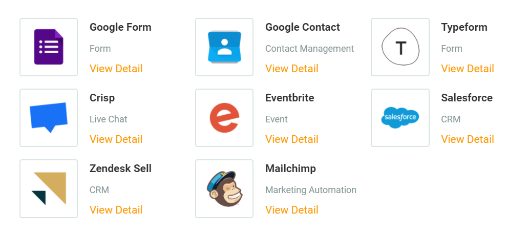 You can now integrate with Zapier to connect with other applications. Available integrations include Google Forms, Google Contacts, Typeform, and many more. You can connect these applications to MTARGET using Zapier. Actions you can choose from include saving contacts and form responses (depending on the selected application).