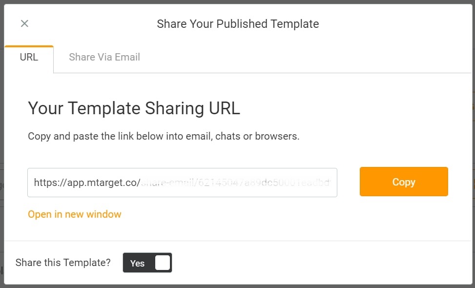 Now you can limit the sharing of templates on Email and Forms for certain MTARGET users. Later there will be a button to do the limitation. If your Share Template button selects Yes, then any user who has the Share Template link cannot use the Template as long as they have never opened it. However, if you want any MTARGET user to be able to use your template, then on the Share Template button select No.